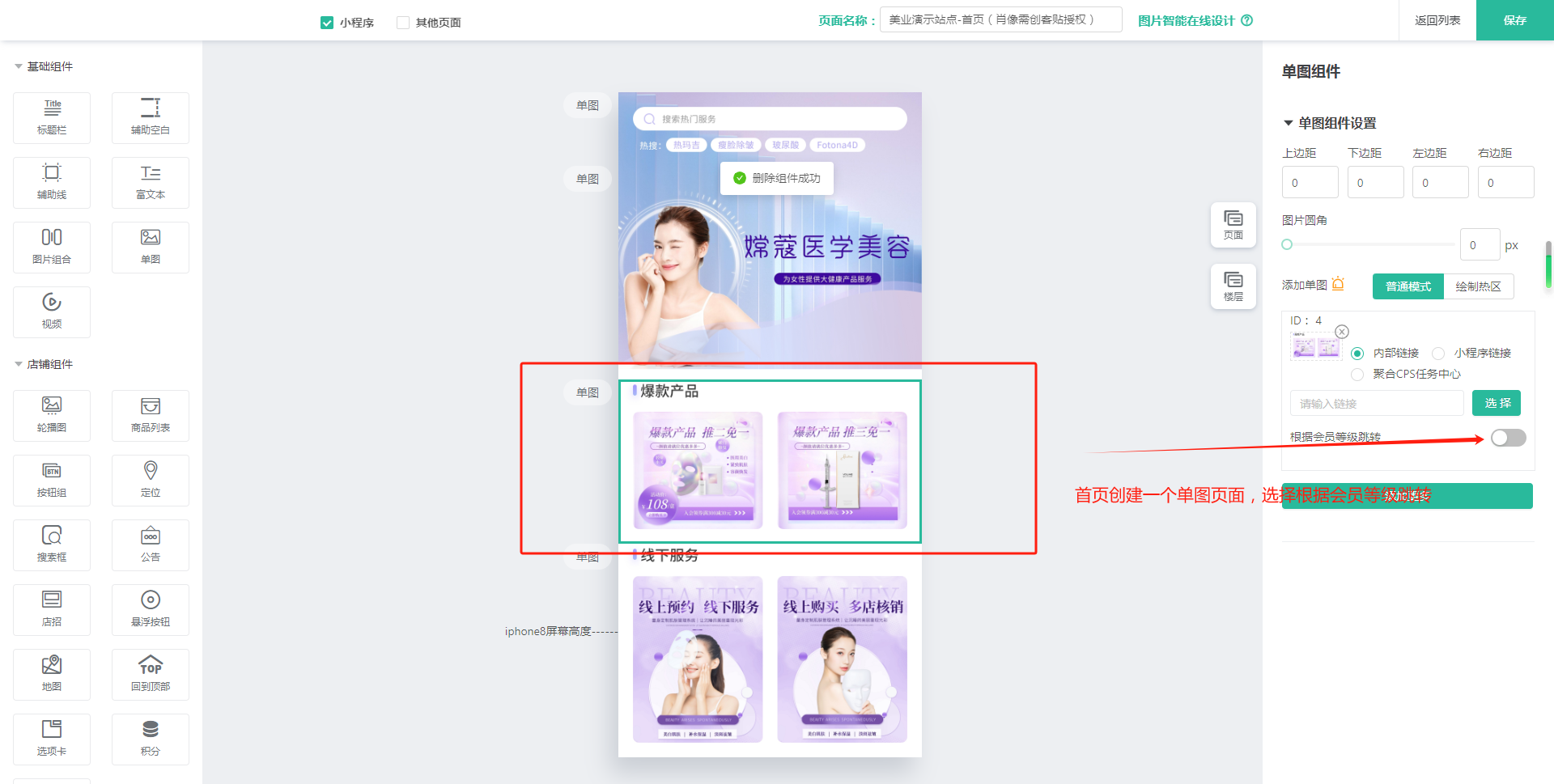 首页创建一个单图页面,选择根虎会员等级跳转