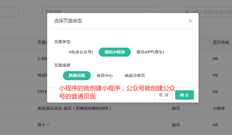 复制页面链接后点击小程序首页去编辑小程序首页